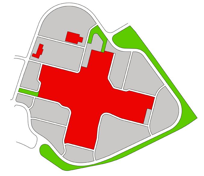infrastructure, a lack of green space and trees resulting in poor stormwater management, and a windowless exterior for much of the mall building.