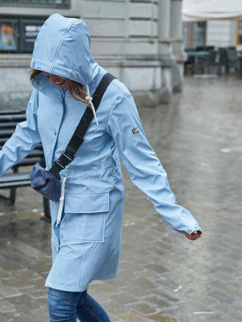 0900 off white (egret) 0509 arctic print 0687 arctic Quinn. Der schöne PU Regenmantel aus dem trendigen PU, macht optisch wie auch funktionell einen guten Eindruck. CHF 129.00 34 36 38 40 42 44 46 48 Artikelnummer 05482 Quinn Damen Regenman tel Zielgruppe Damen Bekleidungstyp Regenmantel Hauptmaterial Polyurethan Genaue Materialbezeichnung PU/PES (PET recycled) Wasser- und winddicht ja (vollverschweisste Nähte) Wassersäule in mm 10 000 Atmungsaktiv nein Beschichtung PU-Beschichtet, PFC frei Futter/Wattierung/Gewichte Ungefüttert Kapuze ja Kapuze abnehmbar nein Aussentaschen 2 Details Regulierbare Taille, Zwei-WegeReissverschluss, Reissverschluss wasserdicht 0687 0509 0900 23 PET PFC FREI