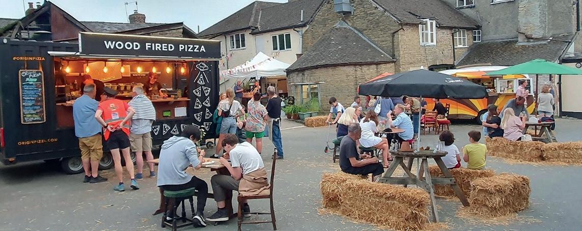 Last stop the Oxford Arms in Kington on wheelbarrow race evening. The good burgers of Kington had closed the High Street to traffic and were sauntering up and down the road as if it was Las Ramblas. Meanwhile The Oxford Arms was running its own mini Glastonbury in their yard. Ice cream wagon, tea coffee and cakes, wood fired pizzas, tents and a bar. The pub has been purchased by Open Arms Kington CIC whose vision is to establish an inclusive and vibrant community ‘pub & hub’. They secured funding of £40,000 awarded by the Community Lottery Fund and later £250,000 from the Community Ownership Fund which contributed towards the purchase of the Oxford. They want to maintain The Oxford as a cherished Kington ‘local’ and venue but they will need to raise more money to pay for the daunting amount of work the building needs. Meanwhile they are going to put on a series of pop-up bar & local food events throughout the summer.
