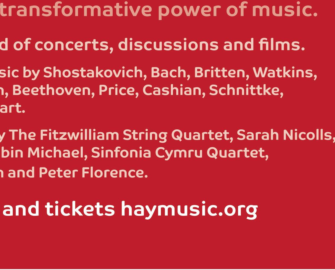 Around Hay-on-Wye remembering the town during the two world wars, 9.30am. Details 07768 020129, www.haymusic.org/festival-events
