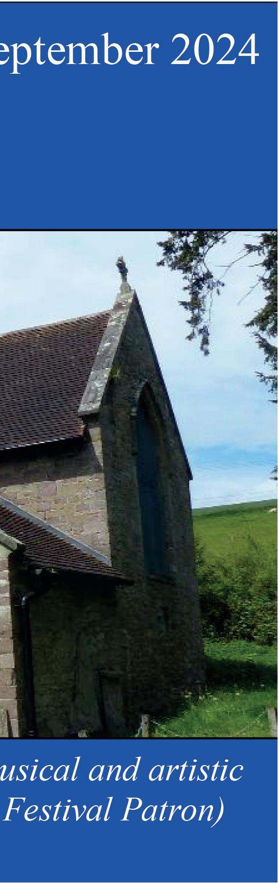 22 Aug - Festival Bat Walk, led by member from the Radnorshire Wildlife Trust. A brief introduction to bats, then walk to the Withybeds Nature Reserve. Bring a torch. Meet at St Andrew’s Church Hall, 7.45pm, £8.