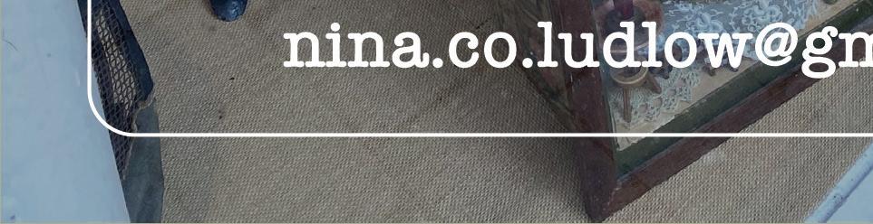 NINA’S COMPLEMENTARY THERAPIES Reflexology, Indian Head massage, Reiki or Crystal healing all from my country treatment room near Pembridge, Leominster. I also offer distant healing. All treatments will be tailored to the individuals needs, first session will include a consultation. For more information or to book, contact Nina at nina.aitchison@gmail.com or on 07527 485404.