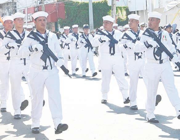 Acompañado de los comandantes de la Quinta Región Naval, José Barradas Cobos, y de Novena Zona Naval, Juan Martín Aguilar Morales, el mandatario estatal fue testigo del desfile organizado como parte de los festejos, en el que participaron 490 marinos, 56 vehículos, 12 embarcaciones menores y 5 binomios caninos.