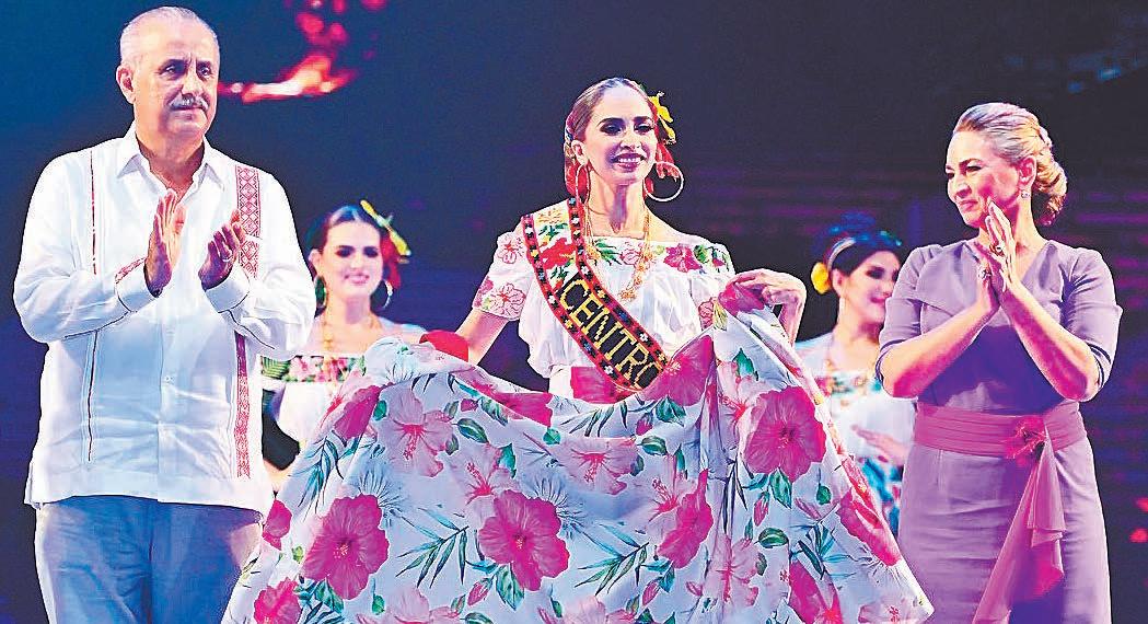 Elgobernador Carlos Manuel Merino Campos acompañado por la presidenta del Sistema DIF Tabasco, Guadalupe Castro de Merino, participó en la tradicional Imposición de Bandas a quienes a partir de esta noche pasan a ser oficialmente embajadoras de la Feria Tabasco 2023 “Nos Reencontramos”.