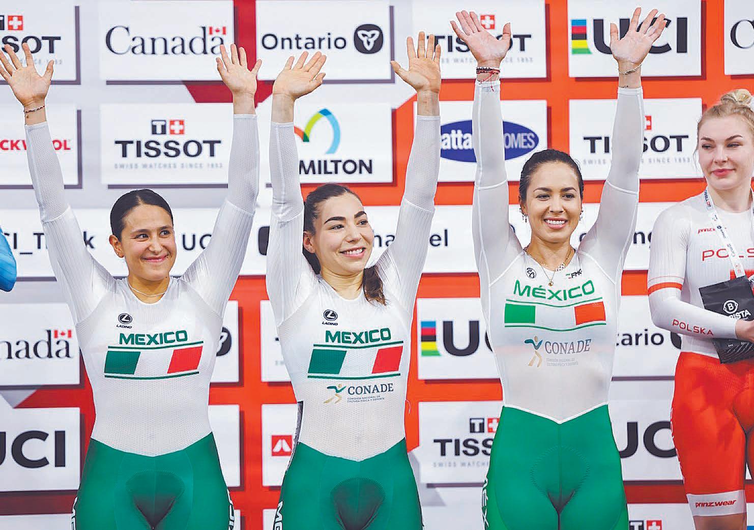 Lasciclistasmexicanas DanielaGaxiola,Jessica SalazaryYuliVerdugoconsiguieronlamedalladeoro enlafinalfemenildesprint durantelaCopade NacionesdeCiclismoquese realizóenMilton,Canadá. Gaxiola,SalazaryVerdugo seimpusieronalequipode Canadá,lograndountiempo enelcronómetrode47.001, lascanadiensesLauriane Genest,KelseyMitchelly SarahOrbanmarcaronun tiempode47.414.Lamedalladebroncefueparael equipodePolonia,quienes marcaronenelcronómetro untiempode47.569.