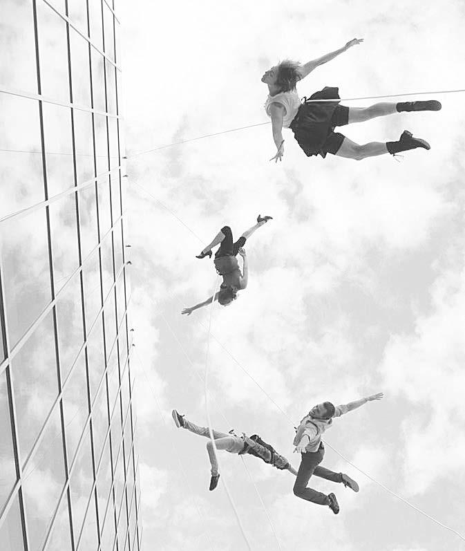 Mediantemovimientosenel aire,ayudadosconarneses,los bailarinespendenametrosde distanciadelsueloenunescenarioverticalquedesafíalas leyesdegravedad,yaseasobre loscristalesbrillantesderascacielos,enedificioshistóricoso rocosasmontañas.Consedeen Oackland,California,lacompañíafuefundadaporlabailarina ycoreógrafaAmeliaRudolph, quienexploralosconceptosde ladanzacomounritualespiritual.Laávidapracticantedela escaladallegóalaconclusión dequeestedeporteeraotra especiededanza,“undueto entrelarocayelescalador”.