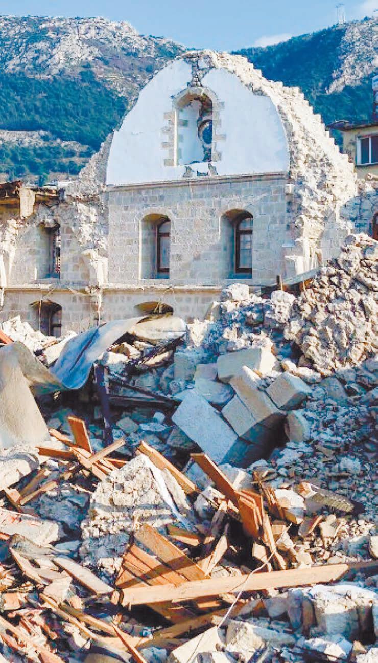 Aunoscienmetros,laiglesiaortodoxagriegafundadaenelsigloXIV—y reconstruidaen1870trasunanteriorterremoto—sufrióaúnmás.La cruzblancaquedominabaeltechodeledificiocayóenmediodeuncaos depiedrasytablasdemadera.“Todoslosmuroscayeron.Estamos desesperados”,lamentaSertacPaulBozkurt,miembrodelconsejoque administraestelugardeculto.