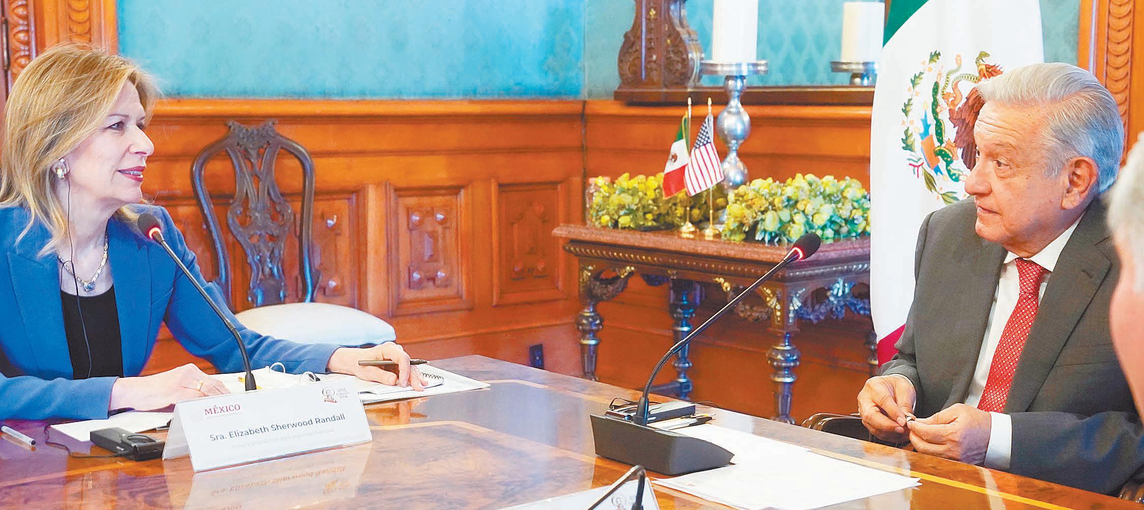 rá con la asesora de la Casa Blanca para Seguridad Nacional, Elizabeth Sherwood-Randall, quien acudirá a Palacio Nacional para un encuentro privado con López Obrador.