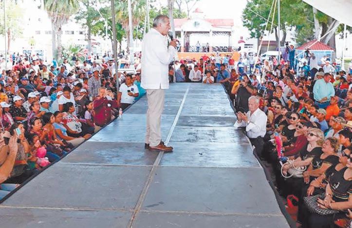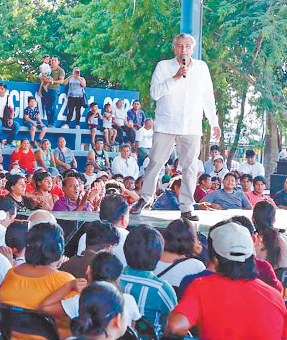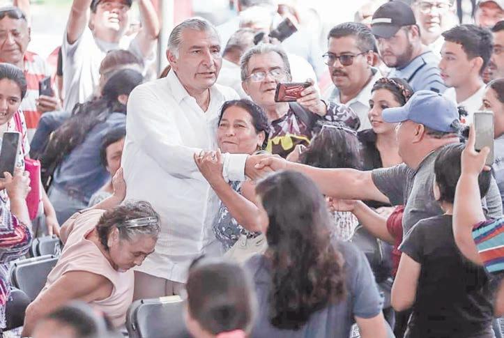 Mientras la gente coreaba ¡Presidente! ¡Presidente!, Adán Augusto explicaba cómo es que la Cuarta Transformación ha hecho justicia a las y los mexicanos, razón por la cual debe de haber continuidad.