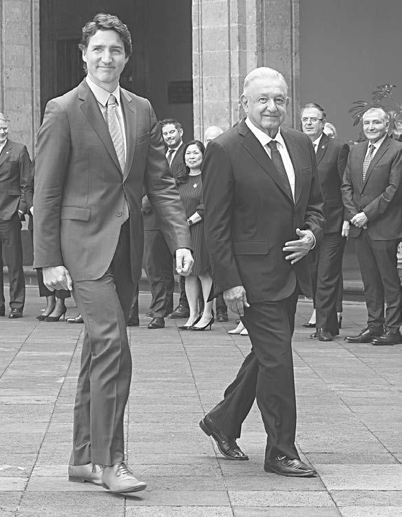 Previamente,AMLOy Trudeauencabezaronla reuniónbilateralconlas comitivasdeMéxicoy Canadá,dondeabordaron diversostemasdeinterés comúnenmateriadeeconomía,migración,energía, cambioclimático,saludy seguridad,entreotros.