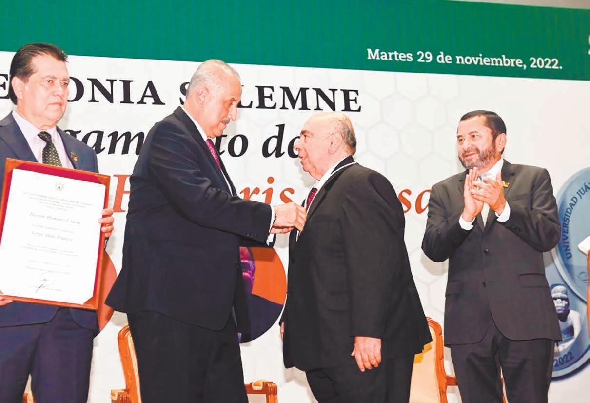 c)ElexrectordelaUJAT, JorgeAbdóseráreconocidoconun DoctaradoHonorisCausaporesa mismaalmamater.Hablandodeesa casadeestudio,selucieronlasautoridadesuniversitariasaltraeraljuristaespañolBaltazarGarzónadisertar unaconferenciamagistral.