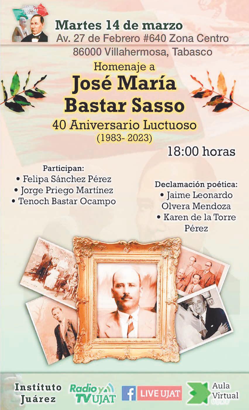 La vida y obra de Manuel Sánchez Mármol, primer direc- tor del Instituto Juárez, es sin duda imprescin- dible para los universi- tarios y tabasqueños, ya que son pocas las personas que con su quehacer logran signifi- car la vida de los otros, y sobre todo al consa- grar su vida al servicio público, a educar desde la literatura, el perio- dismo y la academia”