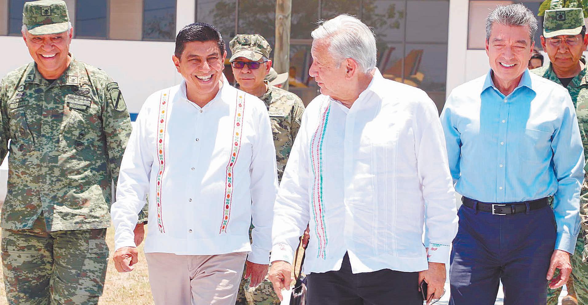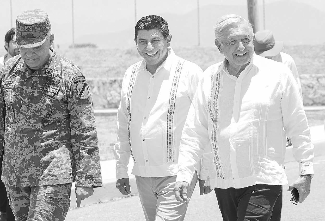 El presidente López Obrador, acompañado por el gobernador de Oaxaca, Salomón Jara Cruz.