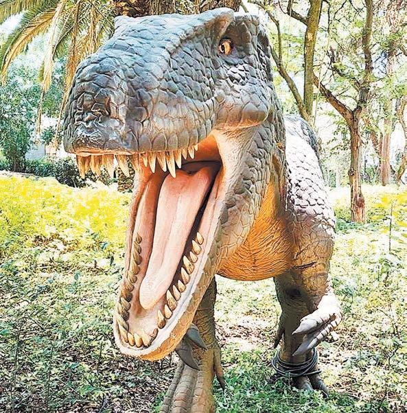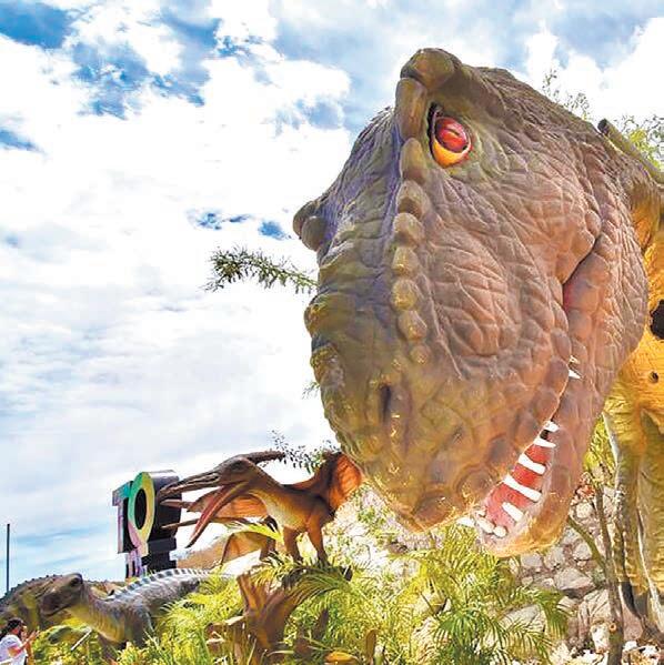 Un feroz tiranosaurio rex posa amenazante en lo alto del balcón de la Casa Miguel Alemán, debajo de un sol arrasador y ante la mirada expectante de cientos de visitantes. Los dinosaurios han regresado al lugar donde hace apenas seis años era la mansión de lujo del poder presidencial.