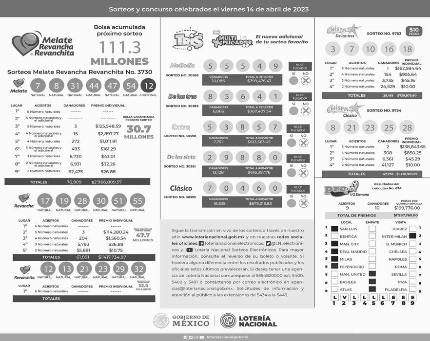 Rumbo Nuevo Sábado 15 de abril de 2023 Loterìa www.rumbonuevo.com.mx 22