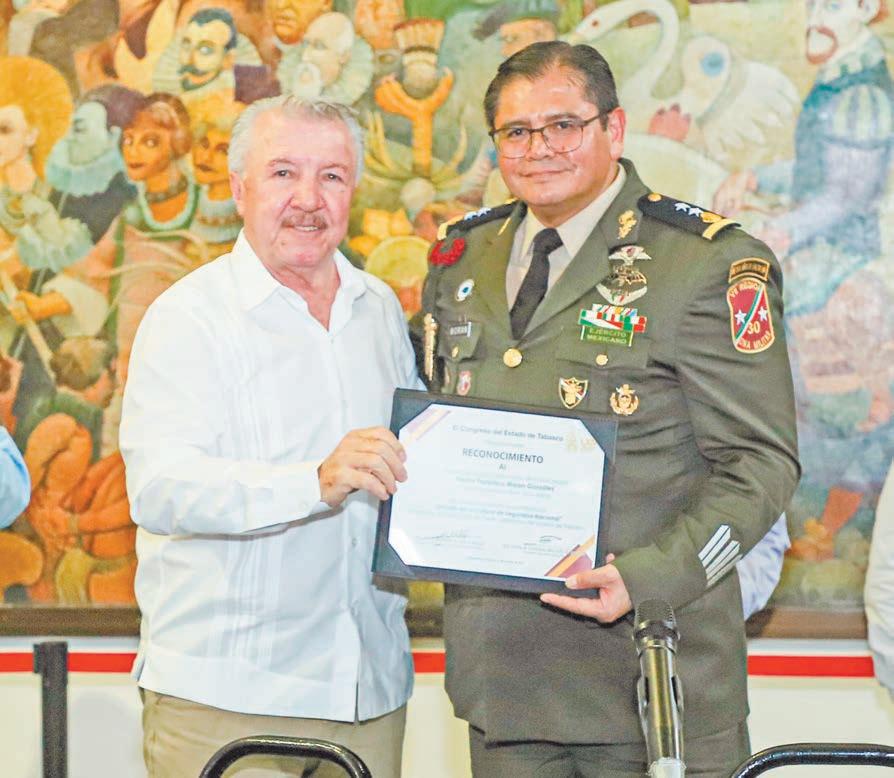 “CuentenconTabasco, conelCongreso,conla ciudadaníayconlos diputadosenlasaccionesqueserealizanen contradeladelincuencia,elloparagarantizarlapazylatranquilidaden laentidad”,establecióelpresidentedelamesa directivadelCongresotabasqueño,Emilio ContrerasMartínezdeEscobar,aquienesintegran laSedenaenlaentidad.Durantesuintervención despuésdelaconferenciasobreseguridadque dictóenellobbydelcongresodelestadoTabasco, elcomandantedela30zonamilitarFrancisco Morán,elrepresentantepopulardejóenclaro,que fueilustrativa,concretaysobretodo,daraentenderqueeltrabajoserealiza,secumpleyseejecuta.“Nosenseñaronqueelejércitoeslealtad,es valentía,ensuhumanismoessolidaridad,yyocreo enelejército,creoenlasfuerzasarmadasdenuestropaís,creoenlossímbolospatrios,enlabandera,enelhimnonacional,creemosenustedes”.“Problemasloshay,miedoslostenemos, somoshumanos,peroesmuyclaroelseñorgeneralFranciscoMorán,nohagamoscasoynodifundamosqueestamosenunestadocrítico, comodijohaceunosdíasunfuncionariodelEstadocomparandoMéxico,aTabascoconunpaísdelexterior,estriste”.“Debemosasumir conlealtadyconvalentíaanuestrasfamilias,anuestrasinstituciones,nuestrotrabajoyhagámoslojuntotodos”.Indicóqueenesastareas denuestrogloriosoejércitomexicano,selesindicóque“cuentenconTabasco,quecuentenconelcongreso,quecuentenconlaciudadaníayquecuentenconsusdiputados”.Deigualmanera,dijoque“meretumbabaeneloídocuandohablabausteddelasinstituciones,del ciudadano,delapatriadelaseguridadnacional;decíaellicenciadoRafaelMarioQuinteroPérezqueeselcivismoyloperdimos,noslas quitarondelasescuelas,esloquesienteelindividuoporlasinstitucionesyporlapatria,perdimosydejamosdeguardaresecelonosenseñabanqueeralabandera,porlasinstitucionesyporlapatria”.