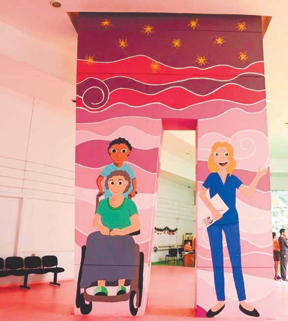 La presidenta del Sistema DIF, previo a recorrer las instalaciones, señaló que el mural fue inspirado en la noble labor que realizan en este centro los médicos, terapeutas y enfermeras, quienes con profesionalismo y sentido humano, apoyan a los beneficiarios con medicina física, rehabilitación y educación especial.