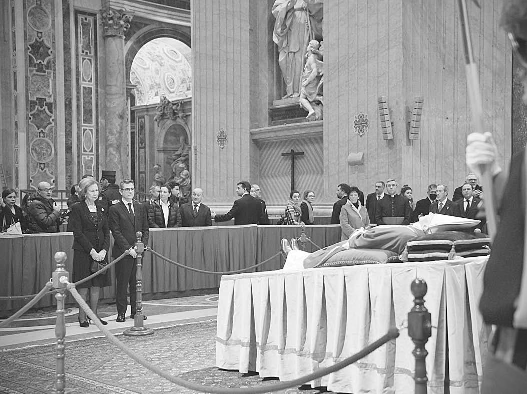 LosrestosmortalesdeBenedicto XVIfueronintroducidos,después delcierredelacapillaardiente,en elféretrodemaderadeciprés,el primerodelostresenlosqueserá enterrado,enunaceremoniaque tuvolugarenelinteriordelabasílicadeSanPedroyquedaráasítodo preparadoparalamisafuneralque oficiarámañanaelpapaFrancisco. Despuésdelostresdíasenlosque cerca200milpersonasacudieron alabasílicadeSanPedroparadar unúltimoadiósalpapaemérito, fue,comodictalatradición,introducidoenunféretrodeciprés forradodeterciopelorojoyenuna ceremoniaseleyóel“rógito”,un pergaminoenelqueestáescritala vidayobrasmásimportantesde BenedictoXVIyquefuedespués introducidoenelféretro.