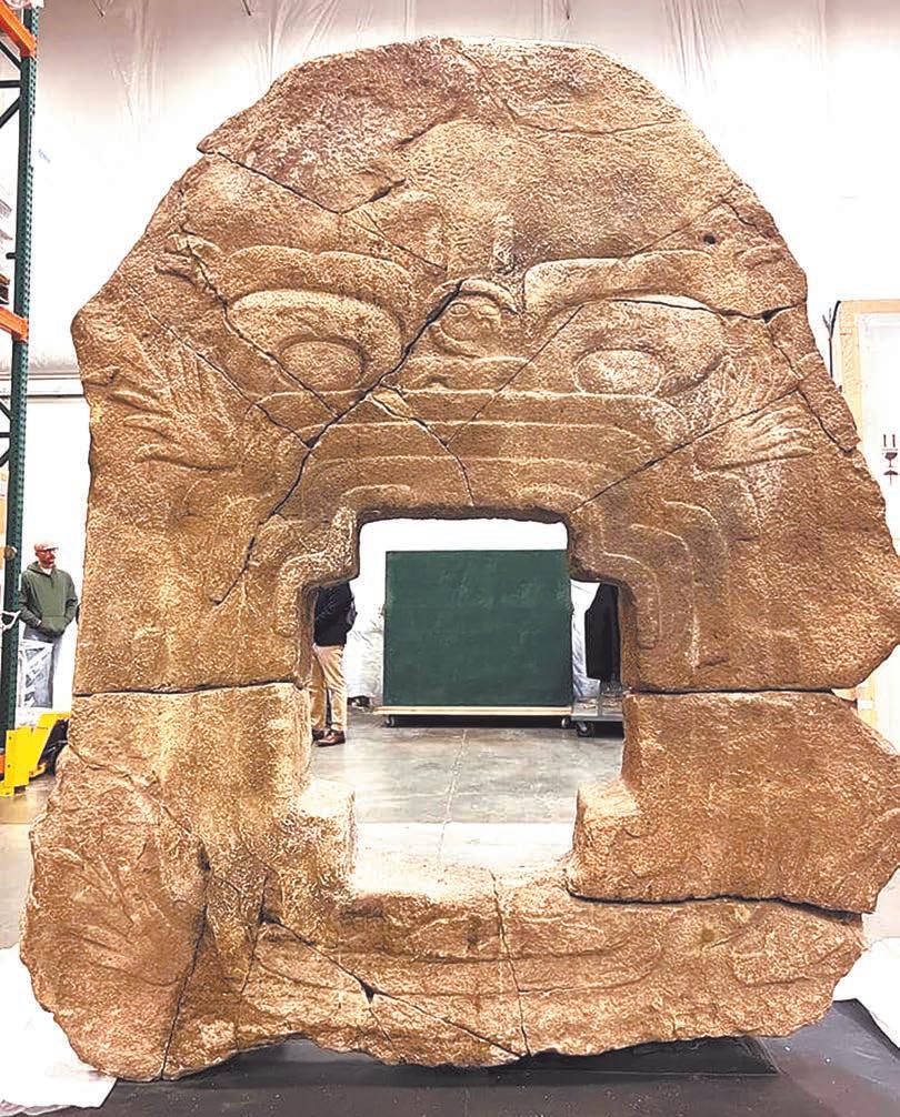 Cuernavaca, Mor. El monolito prehispánico denominado Mounstruo de la Tierra o Portal del Inframundo fue presentado al público este jueves en el Palacio de Cortés, después de que el pasado 19 de mayo fue repatriada de Estados Unidos a México, debido que esta pieza había sido robada de la zona arqueológica de Chalcatzingo en los años 50s. El acto estuvo encabezado por el director del INAH, Diego Prieto, una representante de la secretaría de Cultura, el cónsul de México en Nueva York, Jorge Islas, el titular del INAH, Morelos, Víctor Hugo Valencia. El acto fue en el museo Regional de los Pueblos de Morelos del Palacio de Cortés ubicado este en el centro de Cuernavaca. Se calcula que esta escultura sustraída en pedazos y trasladada a EEUU estará exhibiéndose en este museo hasta enero de 2024 y será trasladada, ahora sí, a Chalcatzingo, zona a la que pertenece esta escultura olmeca. La pieza monumental —de más de una tonelada y alrededor de 1,80 metros de altura— llegó al Aeropuerto Internacional de Cuernavaca de la mano de un Hércules, uno de los aviones de la Fuerza Aérea Mexicana. La estadounidense Unidad de Tráfico de Antigüedades de Manhattan encontró la pieza a finales de marzo, aunque se encontraba en Denver (Colorado).