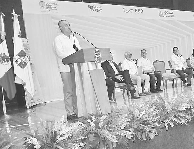 EnelauditoriodelCentro InternacionaldeVinculacióny Enseñanza(CIVE)dela UniversidadJuárezAutónoma deTabasco(UJAT),dondeal iniciarelactosepresentóuna fallaeléctricaquedejóamedia luzelescenario,elmandatario reconocióelcambiode“paradigma”delosmediospúblicos queafinesdelsiglopasado presentabanalaaudiencia programassininterésmasivo.