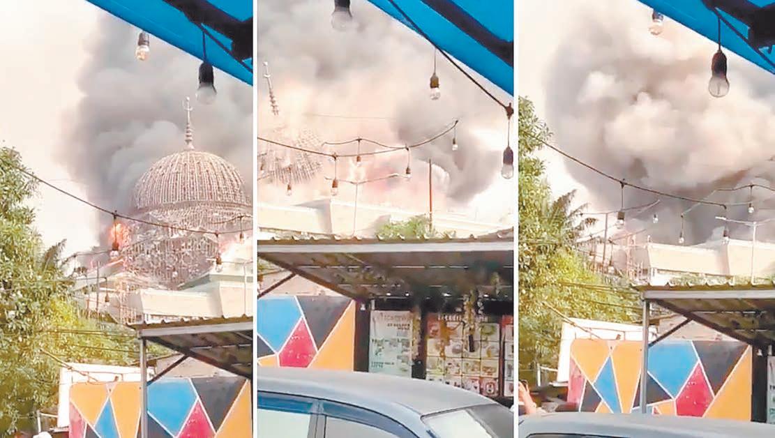 Eldomodelagranmezquitadel CentroIslámicodeYakartase derrumbóluegodegenerarseun incendio,elsiniestrofueprovocado durantelostrabajosderestauración delmismoedificio.