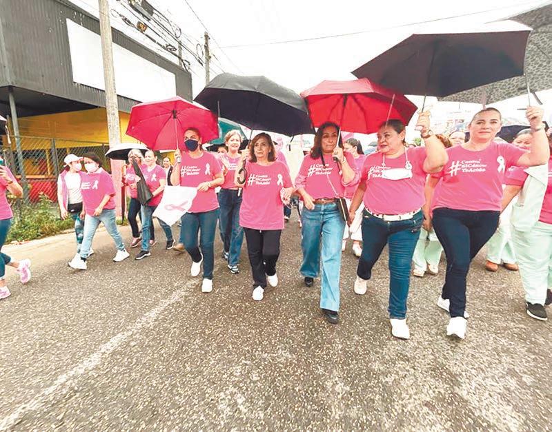 Pesealascondicionesclimatológicas,elcontingenterosademás de300personas,partióalrededordelas07:45horasdelaPlaza Terranovaalasinstalacionesdelhospitalyalgritodeporras como:“Mujer,tevascuidandoyexplorando,contraelcáncer estamosactuando”;“Sevesesiente,lamujerestápresente,seve seescucha,lamujerestáenlalucha”;“Vieneelhuracánylatormenta,enlaluchacontraelcáncernadanosamedrenta”y“La mujerespoder,unidoscontraelcáncerlovamosavencer”,hicieronelrecorrido.