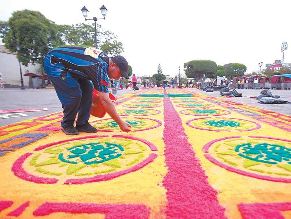 ELABORANELTAPETEDE “LA CRUZ” TRADICIÓN ARTÍSTICAYDEFE