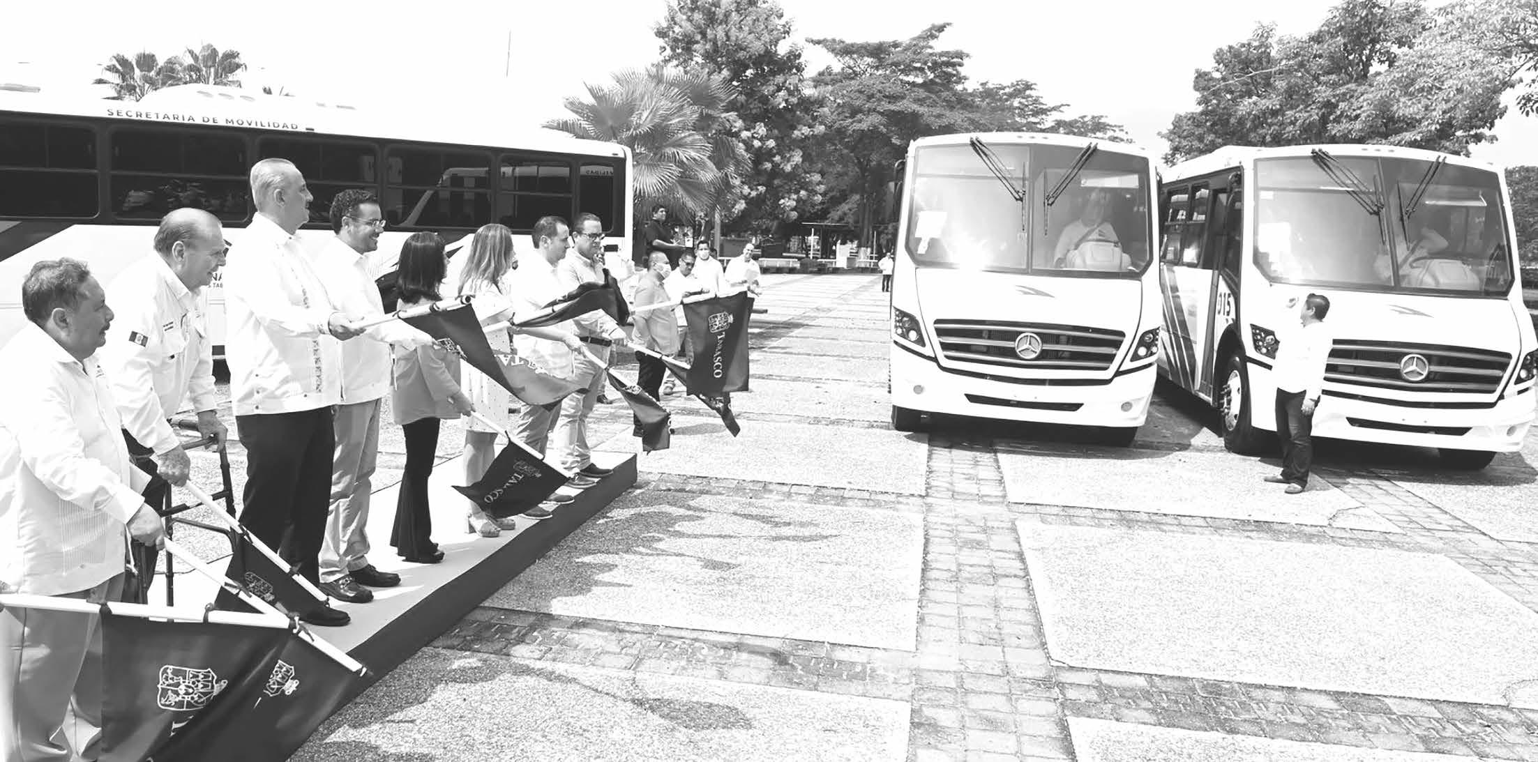 El gobernador Carlos Manuel Merino Campos dio el banderazo a una flota de 40 nuevos camiones del transporte público, operados por la empresa Transportes Nacionales, y equipados con tecnología de última generación