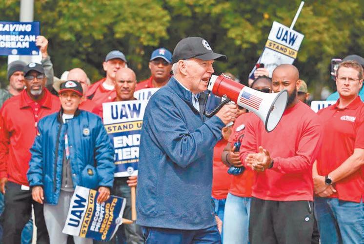 ElpresidenteJoeBidenvisitóaobrerosenhuelgadelaindustriaautomotriz,unelectoradoalquesurivalDonaldTrumpprevédirigirseestemiércolesviajandoalamismaregión,cunadeestaindustria.Elmandatarioen campañaporsureeleccióneselprimerpresidenteenejercicioen EstadosUnidosenvisitarahuelguistasporsuviajeaMichigan.