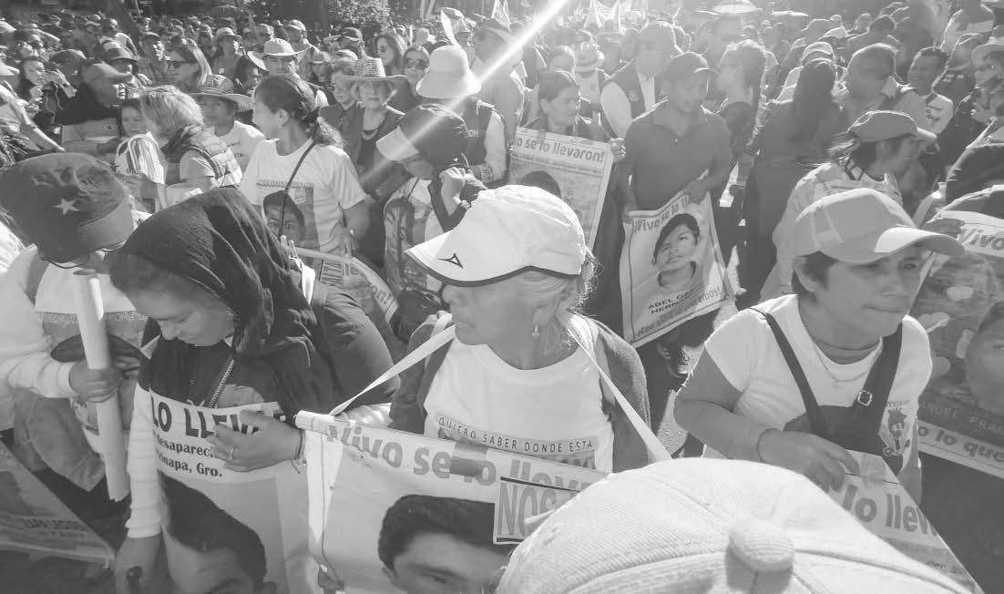 Organizacionespopulares,sindicalesyestudiantilesseconcentraronenelÁngeldela Independenciaparamarcharjuntoconlospadresymadresdelos43normalistasde Ayotzinapadesaparecidosen2014.“Niperdónniolvido”,“+43”,¡justicia!,sonalgunas consignasdelosmanifestantes.