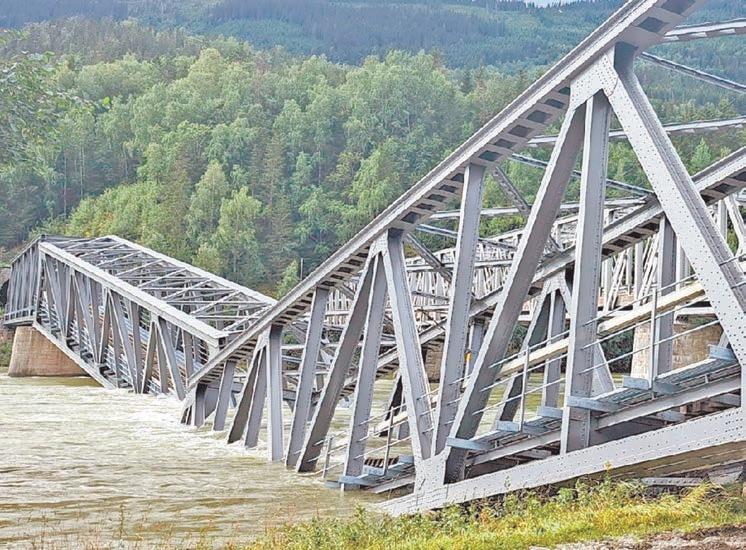 UnpuenteferroviariodelsurestedeNoruegaqueatravesabaunríocrecidoporlaslluviastorrencialesdelosúltimosdíassederrumbó,informaron lasautoridades.BaneNOR,organismogubernamentalencargadodela infraestructuraferroviarianoruega,indicóquelaseccióncentraldel puentedevigasdeacerosobreelríoLaagencolapsóhaciaelagua“debidoadañosenloscimientoscentralesdelpuente”.