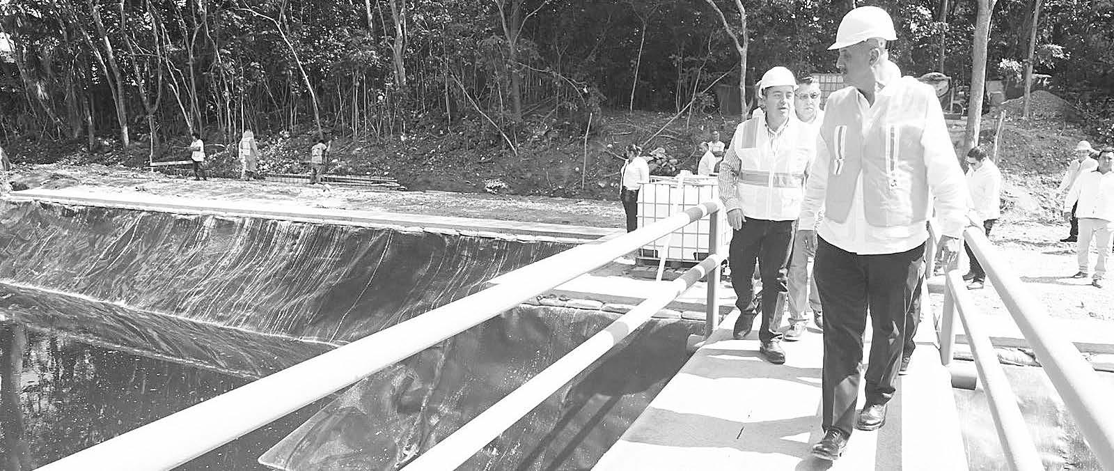 Acompañado por el titular de la Secretaría de Bienestar, Sustentabilidad y Cambio Climático (SBSCC), Manuel Sebastián Graniel Burelo, el mandatario estatal visitó la zona donde se realizan los trabajos de rehabilitación de sedimentadores que conectan al Vaso Cencali, proyecto inicial que arrancó en diciembre del año pasado con una inversión de 11.8 millones de pesos y que beneficiará a una población de 834 mil habitantes.