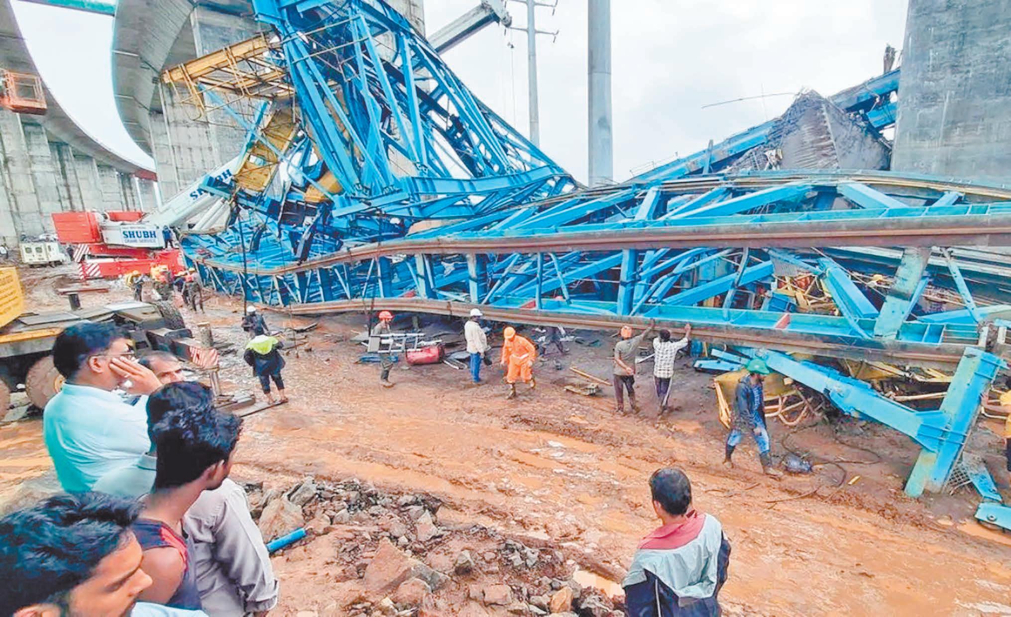 Unaenormegrúasedesplomóenunaobraparaconstruirunacarretera eneloestedeIndia,loqueprovocólamuertedealmenos20trabajadores,dijolaFuerzaNacionaldeRespuestaaDesastresdelpaís.Entomas detelevisióneraposibleveralagrúaenelpisomientrasrescatistasbuscabansobrevivientescercadelsitioenThane,unaciudadenlasafueras deMumbai.Almenostresheridosfuerontrasladadosaunhospital.