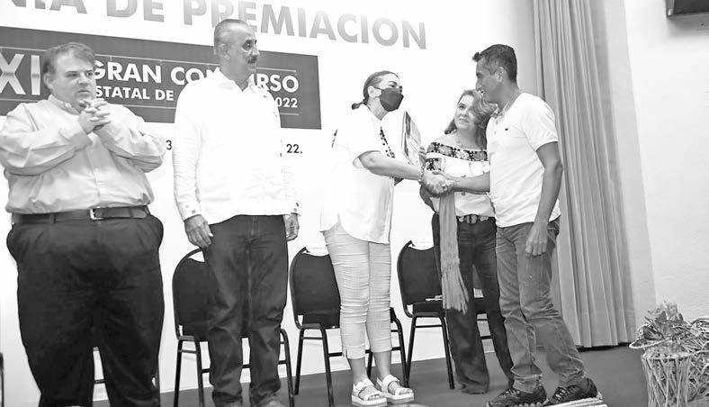 Tambiéndistinguióalosganadores delasramasJícara,Coco,Bambúy Calabazos;yentregóReconocimientosal JovenArtesano;alaPiezadeRescatede TécnicaAncestral;yalGranMaestro;así comoal“GalardónArtesanal2022”,premioquerecayóenelartistaLimbert HernándezLópez,artesanoorgullosamentedeTecoluta,Nacajuca.