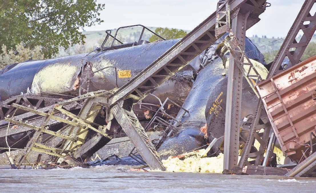 Unpuentesobreelrío YellowstoneenMontanasederrumbóyvariosvagonesdeuntrende cargaconsustanciaspeligrosascayeronalagua,informaronlasautoridadesdeEstadosUnidos. Losvagonestransportabanasfaltoy azufre,dijoeljefedeemergenciasdel condadodeStillwater,DavidStamey.