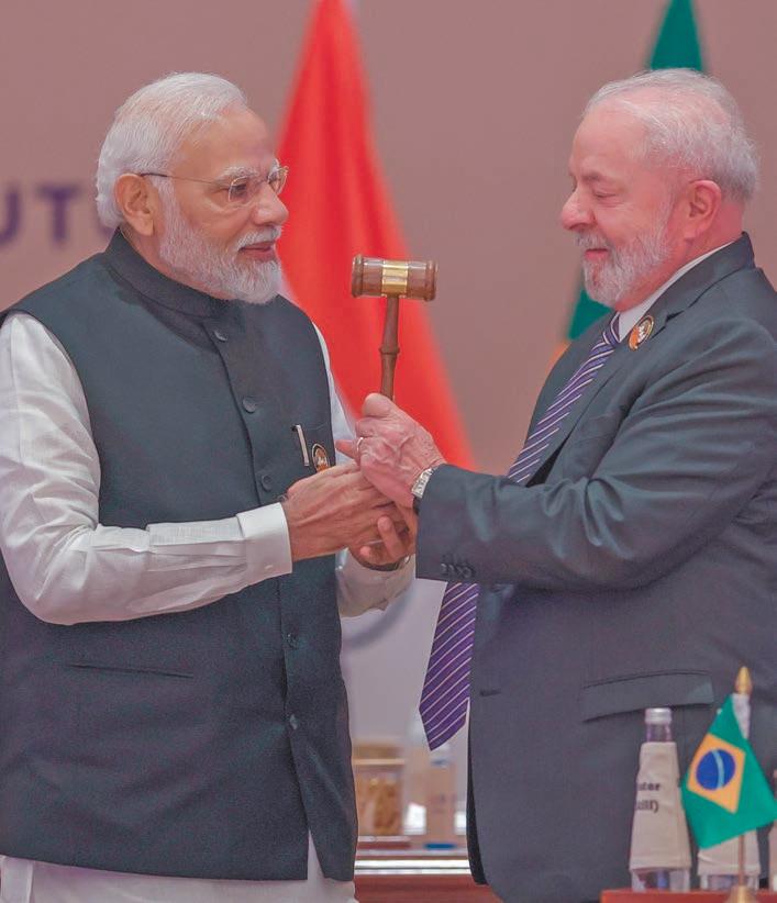 IndiapasaelmazoaBrasil.Tenemosunafeinquebrantableenque lideraráncondedicación,visiónypromoveránlaunidadglobalyla prosperidad.IndiaaseguratodalacooperaciónposibleaBrasildurantesupróximapresidenciadelG20.