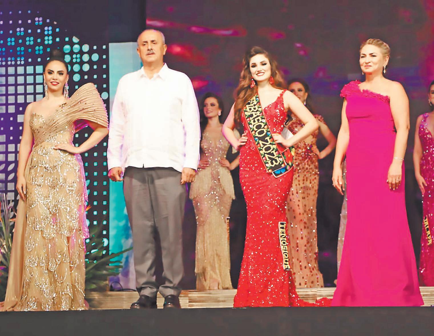 recorrido, luciendo los elegantes vestidos con el que engalanaron la noche. Los conductores Linney Meza y David Priego llamaron primero al escenario a la embajadora de Balancán, Fryda Sofía Jiménez Salvador, seguida por las aspirantes de Cárdenas Karen del Rocío García Martínez, Centla Monserrat Villa Fuster, Centro Paola Torpey Dueñas, Comalcalco Anarely García Fuentes, Cunduacán