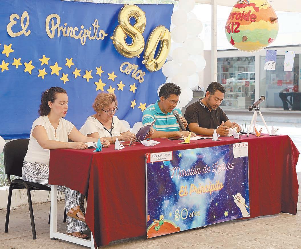 La directora de la Alianza Francesa en Tabasco, Maricela Cacep Rodríguez, llevó a cabo el maratón literario en el marco de la celebración de los 80 años de la primera publicación, de “El principito”, libro infantil que comparten generaciones enteras de lectores. El evento tuvo lugar en la explanada del Cicom, donde los asistentes se dieron cita para escuchar los capítulos que fueron leídos por ellos, pero también hubieron muchas sorpresas para los niños, ya que presentaron una exposición con la temática del libro dando como resultado a 3 ganadores en cada categoría; de 6 a 8 años, de 9 a 11 años y de 12 a 14 años. Los primeros tres lugares de cada categoría recibieron su premio demostrando el talento que tienen desde pequeños, un momento donde cada familia se sintió orgullosa de los pequeños. ¡Felicidades!