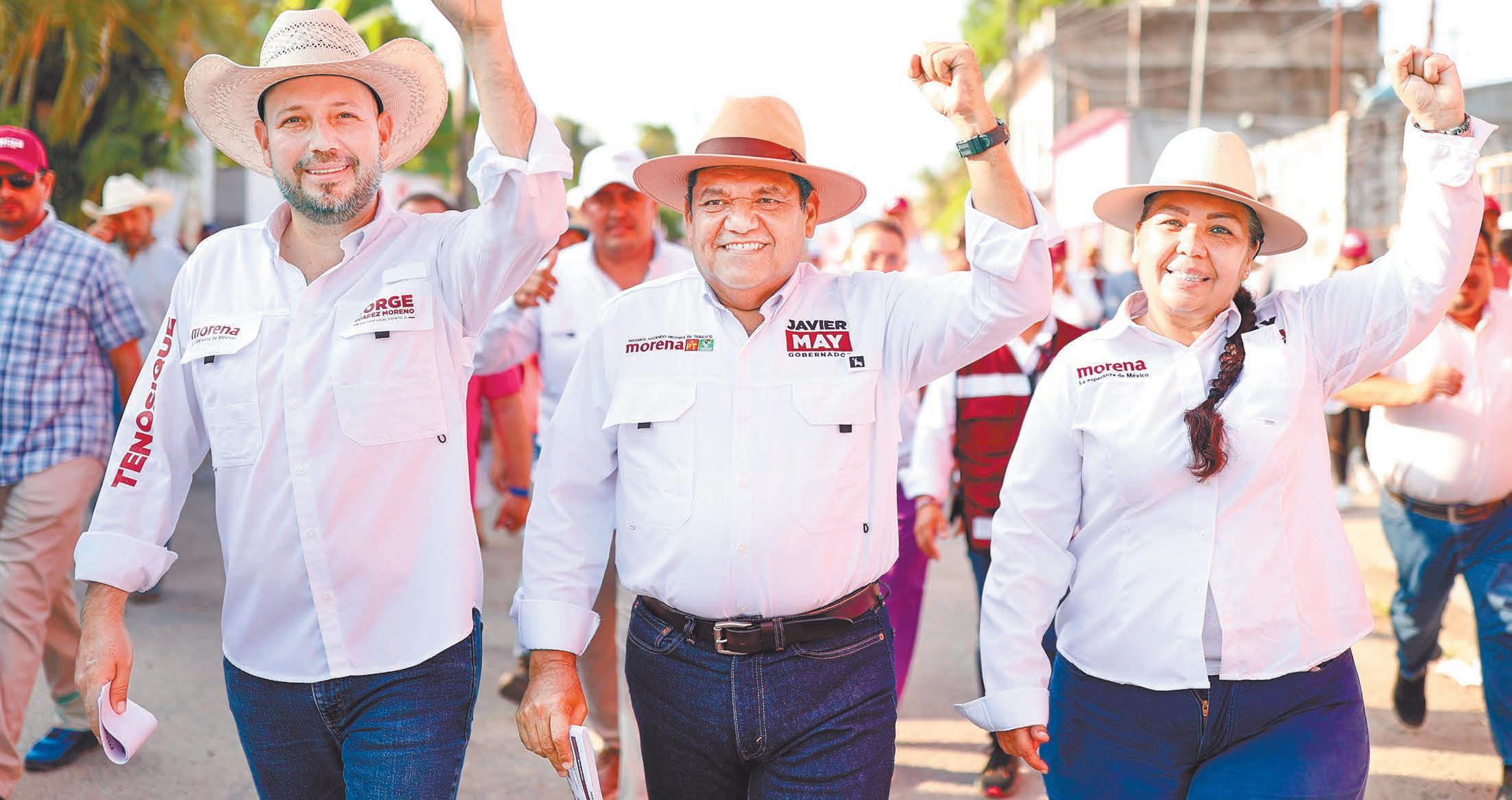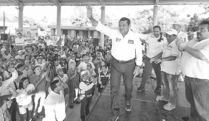 rrióydondeestuvoacompañados envariasocasionesporlosdiversos candidatosyenOcuiltzapotlánpor elaspirantealagubernatura,Javier MayRodríguez,apuntóquelagente sabequeenMorenaexistela honestidad,porello,hayconfianza queseganará.