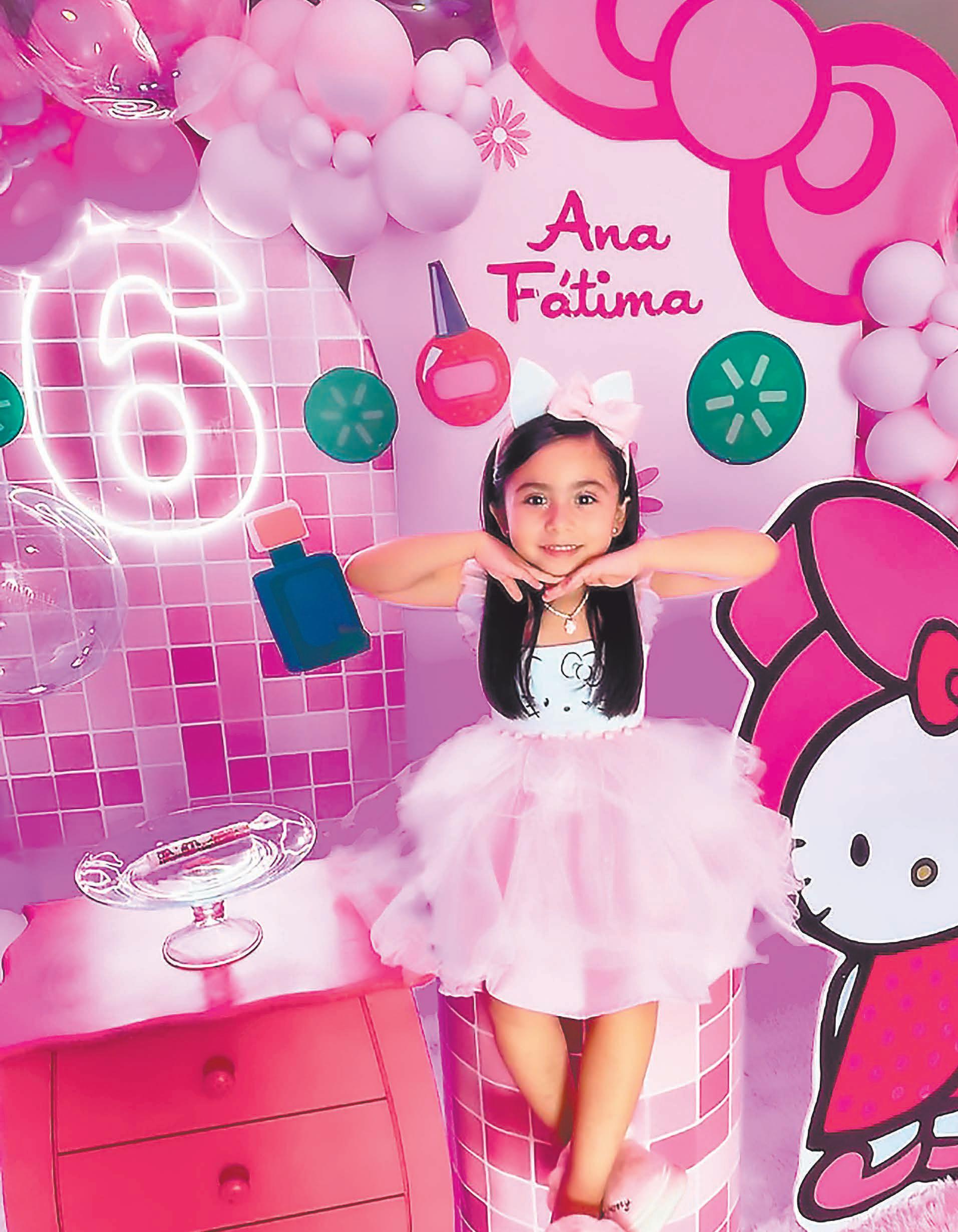La pequeña Ana Fátima Ruiz Ramos celebró sus 6 añitos de vida y por ello sus padres Miguel Ruiz y Ana Cristina Ramos, le organizaron una increíble fiesta temática de Spa Hello Kitty, en donde sus amiguitas del colegio y familiares estuvieron presentes para pasar junto a ella una linda tarde Deliciosos postres disfrutaron todos los invitados, para después continuar jugando y dar paso así a cantarle las mañanitas Asimismo, la linda cumpleañera lució muy contenta y como agradecimiento en acompañarla en ese día tan especial, les entregó a su familia y amigas unos detalles sorpresas en los juegos. ¡Felicidades!