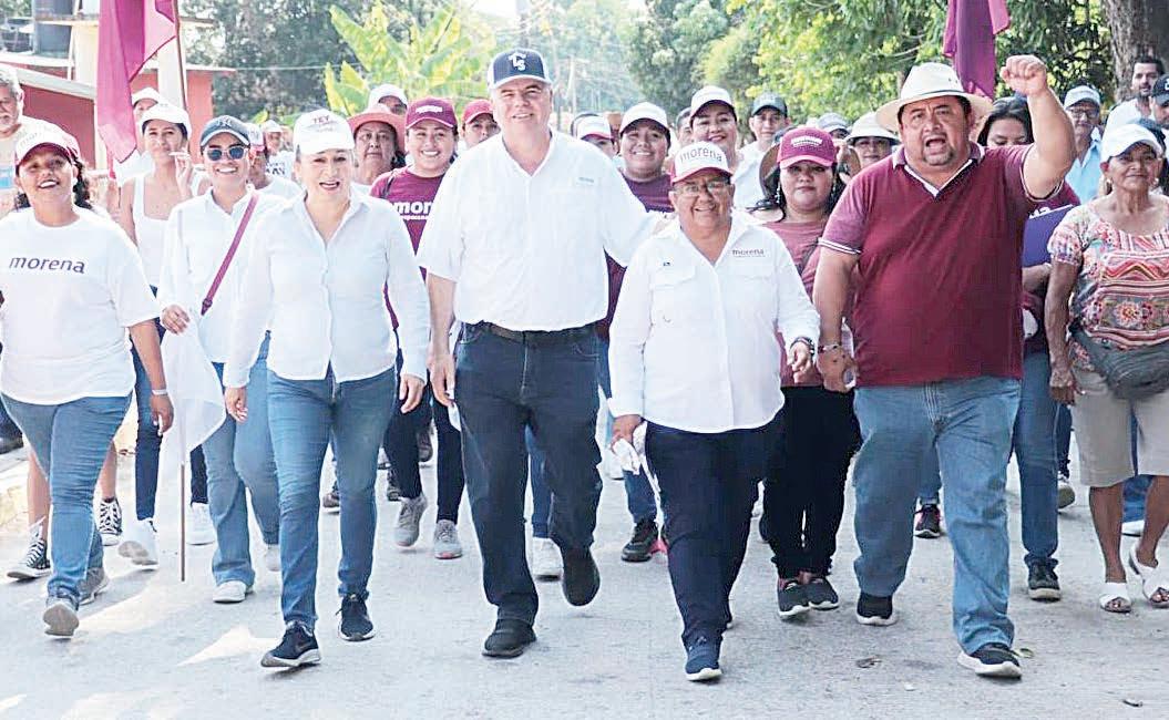 Varias veces acompañado por la candidata a la senaduría Rosalinda López, de la aspirante a la presidencia municipal de Centro, Yolanda Osuna y de quien busca ser diputada federal del cuarto distrito, Tey Mollinedo, el calor no le hace mella. En este mes, llega, saluda, camina, toca puertas y el diálogo es cara a cara.