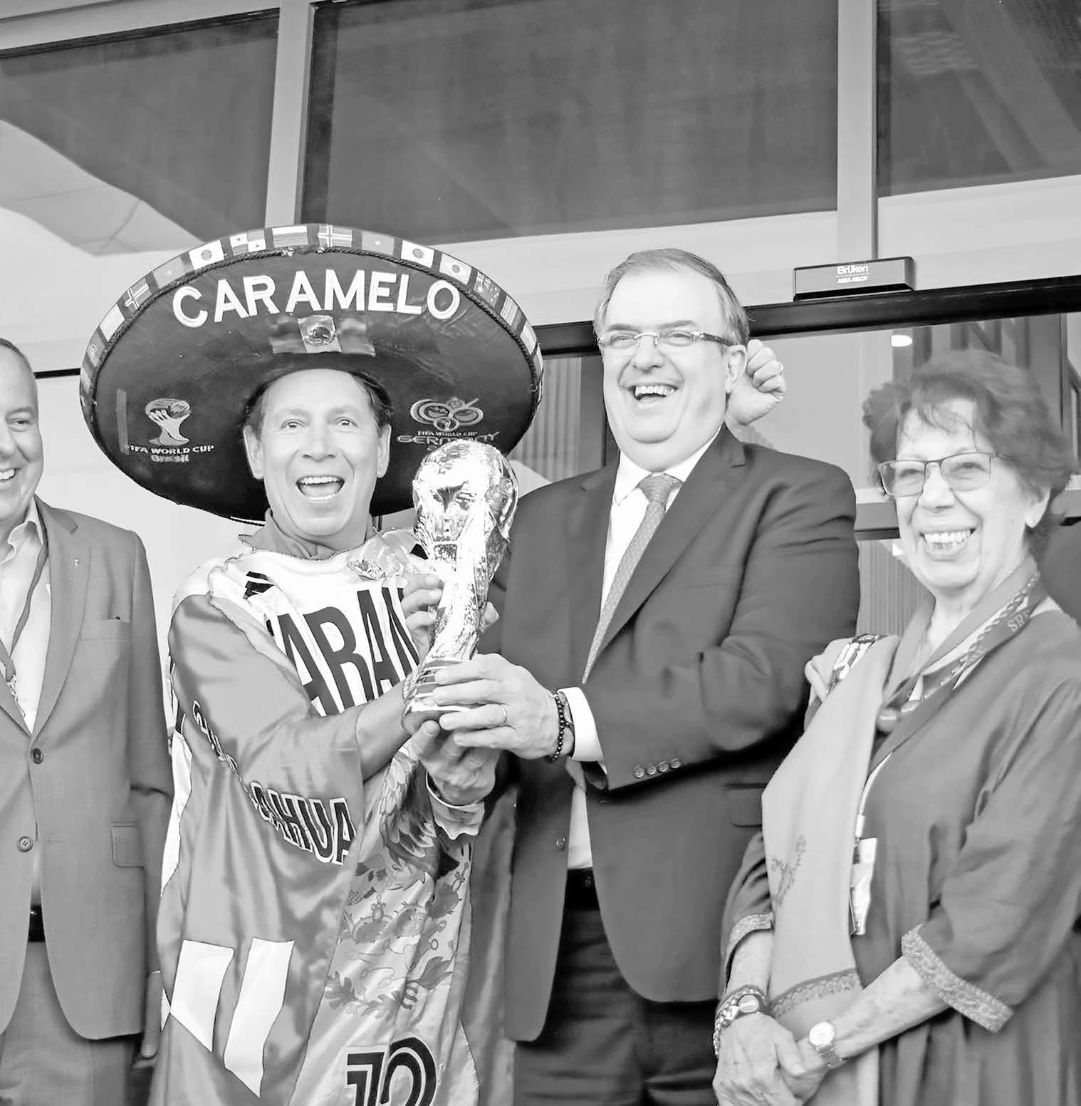 Enrepresentación del presidente Andrés Manuel López Obrador, el canciller Marcelo Ebrard recibió la Copa Mundial de la FIFA Qatar 2022 en el Aeropuerto Internacional Felipe Ángeles, para comenzar el recorrido que hará el trofeo durante seis días en México, el primer país de América Latina que visita en un tour mundial.