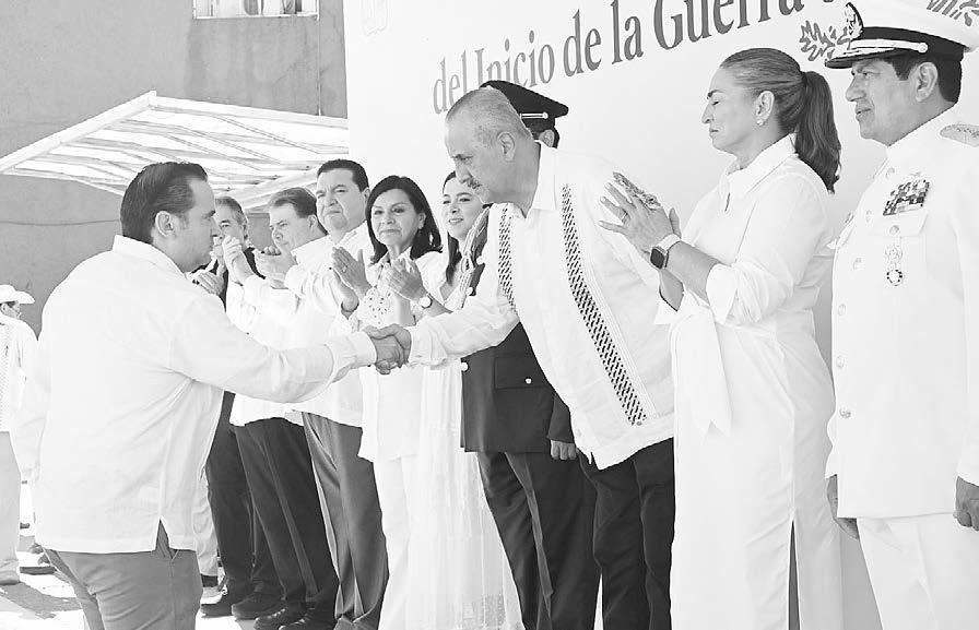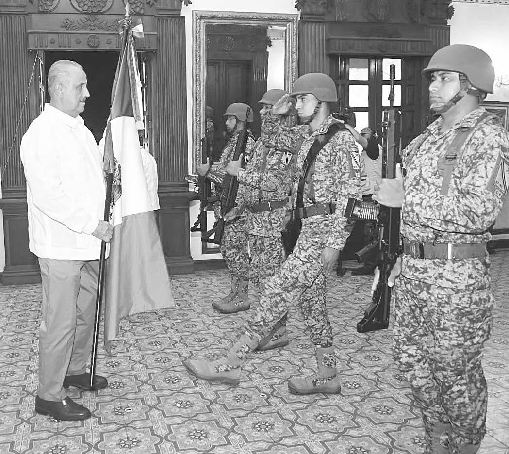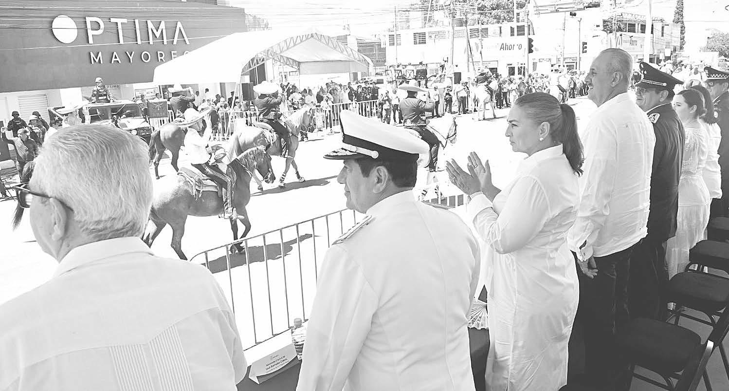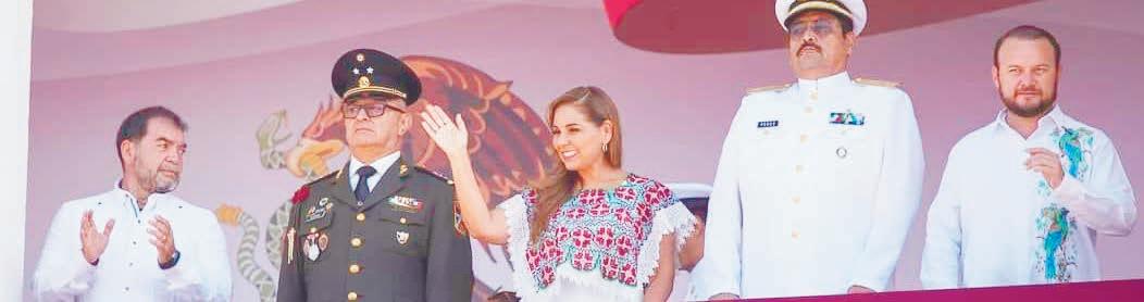 Acompañado de la presidenta del Sistema DIF estatal, Guadalupe Castro de Merino; la alcaldesa de Centro, Yolanda Osuna Huerta; y los comandantes de la Trigésima Zona Militar, Héctor Francisco Morán González, y la Quinta Región Naval, José Barrada Cobos, el jefe del Ejecutivo presenció el despliegue de contingentes que marcharon a lo largo de la avenida “Gregorio Méndez Magaña”.