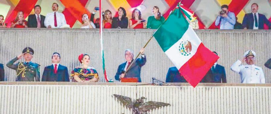 El jefe del Ejecutivo ondeó el lábaro patrio que recibió de la escolta de cadetes del Heroico Colegio Militar en el Salón de Embajadores. Posteriormente, acompañado de integrantes de su Gabinete, apreció desde el balcón la pirotecnia que iluminó el primer cuadro de la capital.