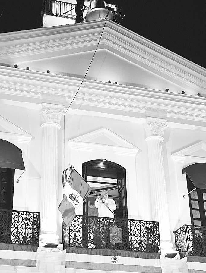 Desde el balcón de Palacio de Gobierno, Carlos Manuel Merino Campos honró la memoria de los héroes de Independencia y, replicando lo que hizo el cura Miguel Hidalgo la madrugada del 16 de septiembre, sonó la campana ubicada en lo alto de la sede del Poder Ejecutivo y ondeó la bandera tricolor.