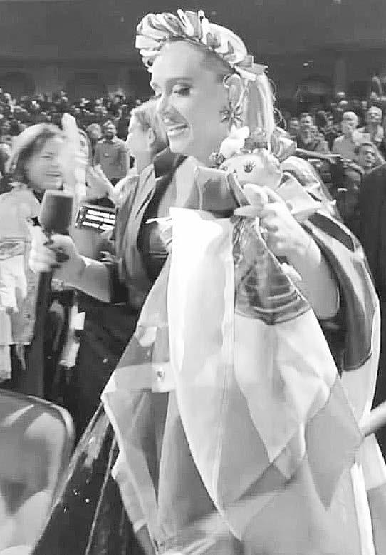 Adele,famosacantante británica,celebróla Independenciade Méxicoduranteunode susconciertosenLas Vegas,EstadosUnidos portandoenlacabeza unacoronadelazosde coloressimilaralaque utilizalamuñecaartesanalmexicana‘Lele’ querecibiócomoregalo porpartedeunasistentealconcierto