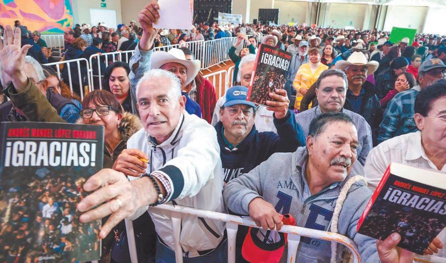 Aldarleslabienvenida,el gobernadorDavidMonreal considerólaposibilidadde queestafueralaúltimavisita deLópezObradoralestadoy leagradecióporsutrabajoen estosseisañosdegobierno. “…Porrecordarnosqueelserviciopúblicoesunapostolado. EnMéxicoyZacatecassiéntaseconlasatisfaccióndel debercumplidoypatriótico. Conidealesyconvicciónhonraremossulegado,asegurandosurelevogeneracional”.