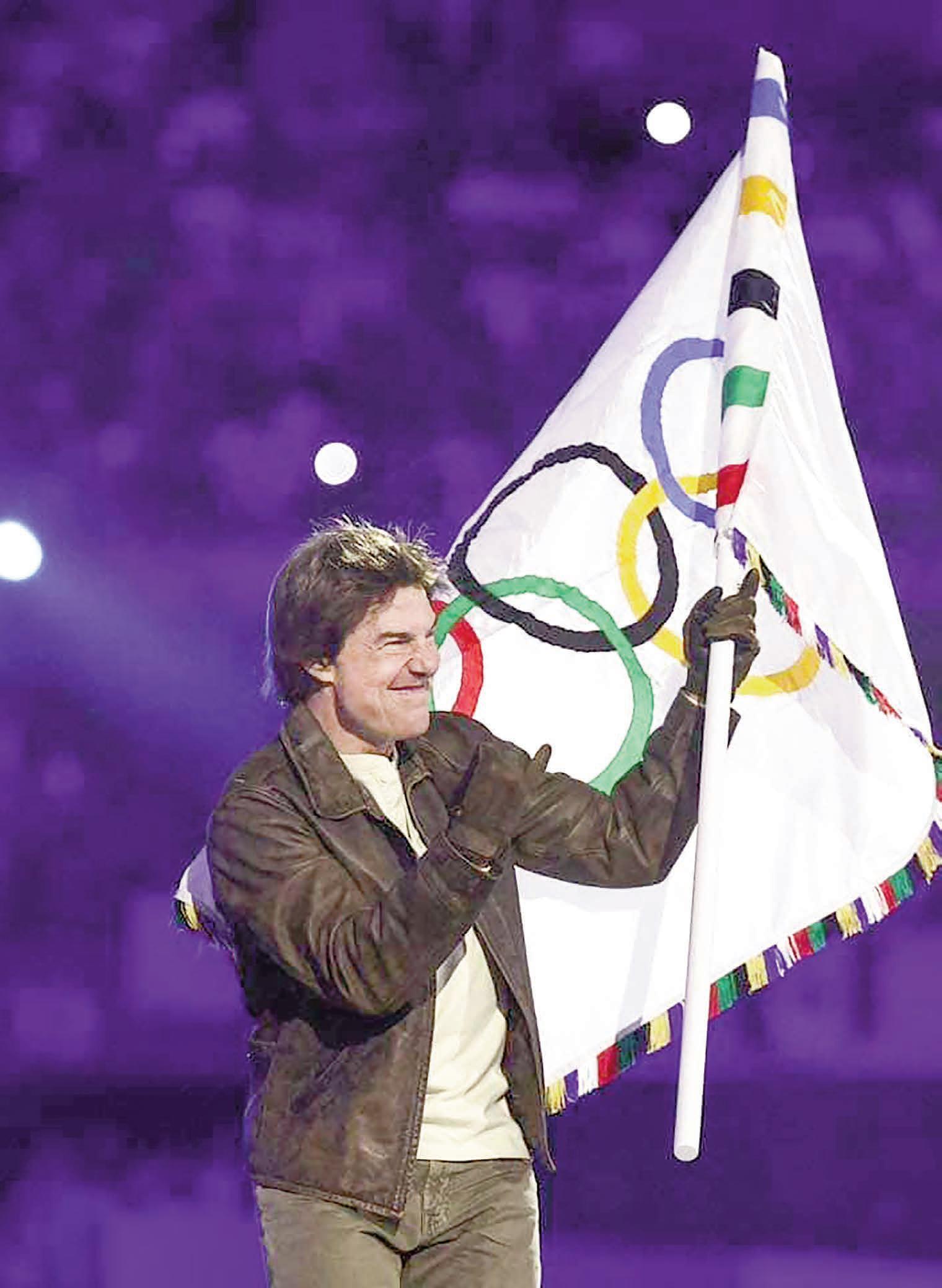 No podía faltar la referencia a Hollywood. Tom Cruise protagonizó una secuencia que recuerda a los filmes de acción que han caracterizado su carrera. Tras correr entre los deportistas subió al escenario y recogió de la gimnasta estadounidense Simone Biles la bandera olímpica y la montó en una motocicleta, a bordo de la cual salió en un metafórico viaje hasta la metrópoli californiana.