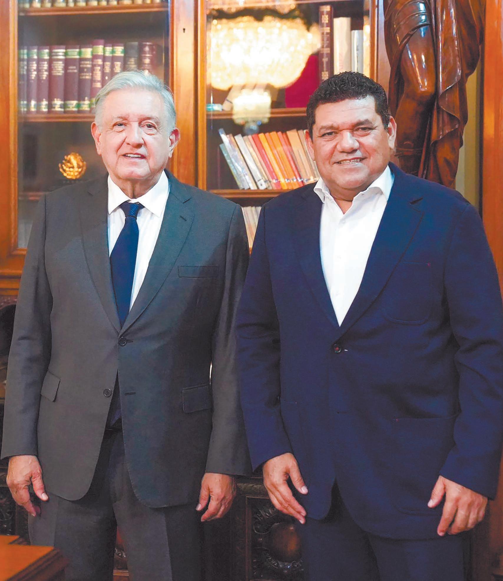 posan para la fotografía oficial. A la derecha del presidente López Obrador se ve el respaldo de la silla presidencial y el escudo nacional, en tanto que al fondo estantes con libros. Ambos dibujan acaso una ligera sonrisa como prueba de afectividad. Uno aparece con corbata, sin ella, el otro. La formalidad se rompe asimismo cuando en la segunda imagen ambos aparecen en los lustrosos pasillos de Palacio Nacional. El presidente López Obrador, como es su costumbre, con las manos enlazadas por detrás, al nivel de la cintura, mientras el inminente sucesor del gobernador Carlos Manuel Merino Campos, habla. Dialoga. De la difusión del inesperado encuentro en Palacio Nacional, se encargó el virtual gobernador electo Javier May Rodríguez en un mensaje en su cuenta personal de X