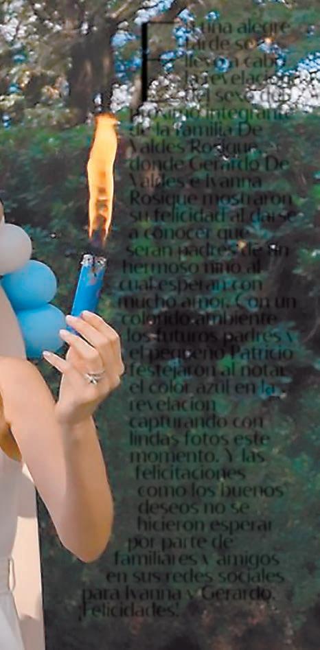 En una alegre tarde se llevó a cabo la revelación del sexo del próximo integrante de la familia De Valdés Rosique, donde Gerardo De Valdés e Ivanna Rosique mostraron su felicidad al darse a conocer que serán padres de un hermoso niño al cual esperan con mucho amor. Con un colorido ambiente los futuros padres y el pequeño Patricio festejaron al notar el color azul en la revelación capturando con lindas fotos este momento. Y las felicitaciones como los buenos deseos no se hicieron esperar por parte de familiares y amigos en sus redes sociales para Ivanna y Gerardo. ¡Felicidades!